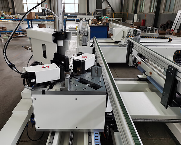 铝门窗卧式数控挤角生产线主要用于铝合金门窗四个角的同步冲铆连接。